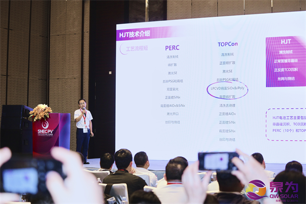 同日,2024 SNEC PV+第十七届全球光伏前沿技术大会异质结专场,由新加坡国立大学新加坡太阳能研究所专家主持召开,并邀请了行业内领先的异质结科技企业进行技术分享,泉为科技研究院专家李森博士应邀出席题为《海上光伏的关键技术路线与方案》的演讲,李森博士强调,面对陆地资源的日益紧缺,发展海上光伏,已成为当前光伏发展的时代趋势。泉为科技以此为契机,积极探索可持续发展模式,推出基于海上光伏和特殊户外场景为基础的一系列技术方案和科技应用。