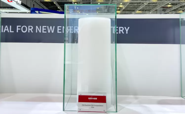 另外,明冠新材今年还展出了针对TOPCon电池封装的双抗EVA胶膜(抗PID和抗酸)。双抗PID胶膜通过配方优化,加强胶膜阻隔离子迁移能力,降低电池片极化效应,从而改善组件抗PID性能。随着TOPCon电池LECO技术推广,明冠具有双效抗PID的EVA胶膜即可以满足封装要求。成本上,EVA较EPE有较大价格差异,具有特别高的性价比,给客户带来材料降本。