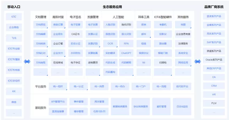 蓝凌MK支持1000+软件、服务集成,让应用互通、数据互联、业务高效