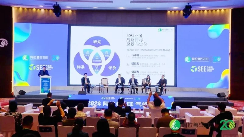 “企业可持续发展(ESG)实践与前沿趋势”主题会议旨在分享和展示来自机构内外的各行业典型案例,共同探讨阿拉善SEE作为平台型机构,如何推动企业在ESG领域的可持续发展,促进环境与社会责任实践。会议吸引各界专家和企业代表共同参与,为企业可持续发展、打造核心竞争力提供更多创新思路和最佳实践。