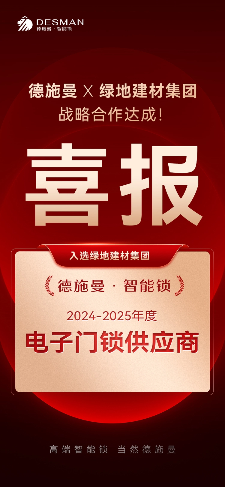 德施曼智能锁入选绿地建材集团“年度电子门锁战略合作供应商”!