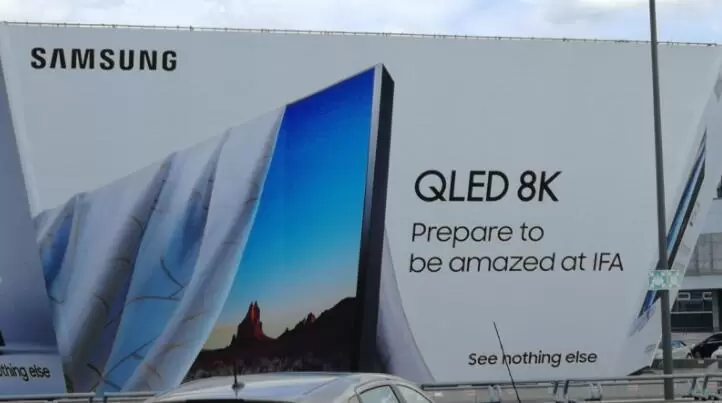 Note 9、Galaxy Watch甚至Tab S4发布后,月底的德国IFA大展,三星的重点可能会聚焦在家电上。有推特用户爆料,柏林街头已经出现了三星的巨幅广告板,上面显示三星将带来8K分辨率的QLED光质量子点电视。