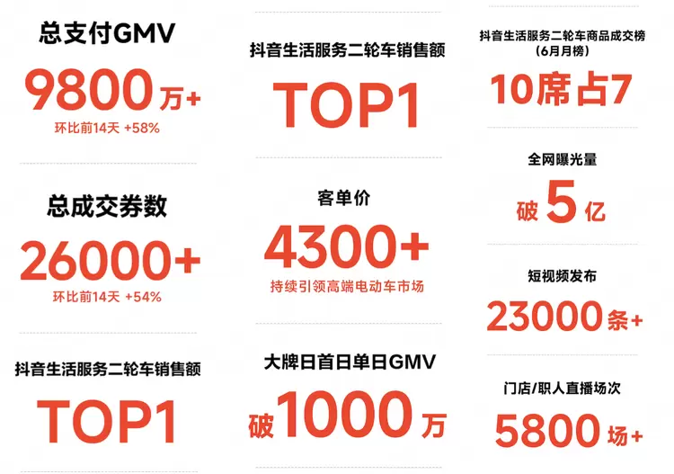 活动期间,九号公司取得的成绩堪称惊人。总成交GMV高达9800万+,总成交券数达到了26000张+,在抖音生活服务二轮车销售额中位列TOP1。这一成绩不仅展现了九号作为国民出行品牌的强大实力,更是对用户认可度的最好证明。在数字化营销的大潮中,能够取得如此成绩,足以证明九号公司在营销策略和品牌建设上的成功。