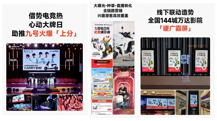 此外,九号公司还通过线下联动造势,增强了品牌的可见度。全国144城万达影院的硬广霸屏,让消费者在享受电影的同时,也能直观地了解到九号公司的产品和品牌。同时,九号公司还积极借势电竞热,通过与游戏合作等方式,进一步扩大了品牌的受众基础,让更多的年轻消费者了解到了九号公司的产品。