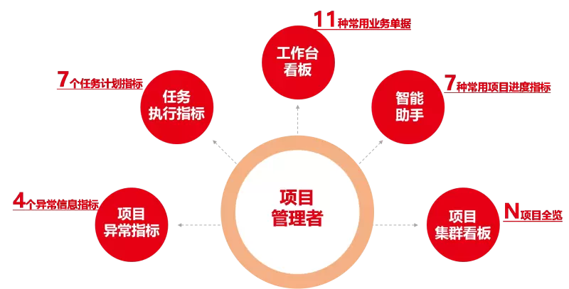 对于拖期项目、拖期任务、拖期产出等异常指标,系统可自动给出提升消息,有效帮助管理者实时了解项目的进度和异常。