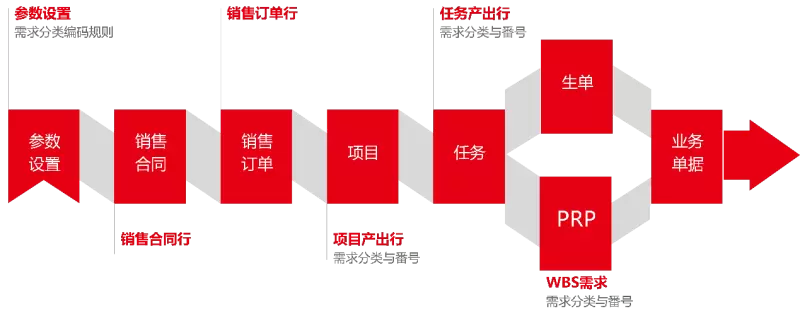 需求分解、销售订单、任务产出等:这是将需求转化为具体任务和执行步骤的关键环节,涉及销售订单的生成、任务的产出等。