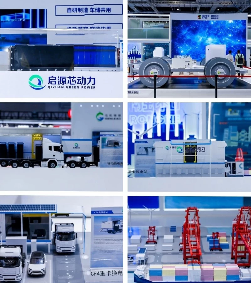 除此之外,展会现场还展出了能够根据不同运输场景的不同需求灵活组合电量的启源标准箱电池,助力园区打造“光储充一体——综合智慧能源港”的启源MF7、CF4充换电站,更有可有效提高换电重卡冬季续航的超强热管理系统“三源热泵”,可提供灵活快速补能服务的Y3移动充换电能源车,还有用低碳高效的绿色运力守护江河湖海的换电船舶等精美展品!