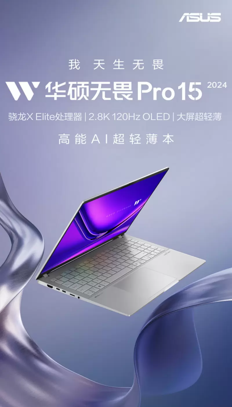 搭载骁龙X Elite处理器 华硕无畏Pro15 2024今日开售:7999元