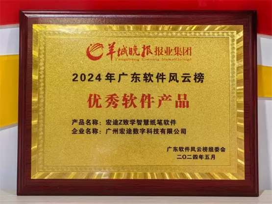 此外,2024年广东软件风云榜颁奖仪式也在此次会上举行。广州宏途数字科技有限公司“宏途Z致学智慧纸笔软件”产品,荣获2024年广东软件风云榜优秀软件产品。2024年广东软件风云榜由羊城晚报报业集团携手广东软件行业协会、广东省大数据协会联合开展,旨在促进云计算、大数据、人工智能、物联网、信息技术应用创新等新一代信息技术创新应用,推动广东软件与信息服务战略性支柱产业集群高质量发展,表彰为广东省数字经济发展作出突出贡献的企业、企业家、技术骨干、优秀产品。