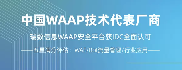 瑞数信息WAAP安全平台获得IDC的关注和认可,入选报告中国WAAP技术代表厂商,并在WAF、Bot流量管理、行业应用等评估维度获得满分5星评价。