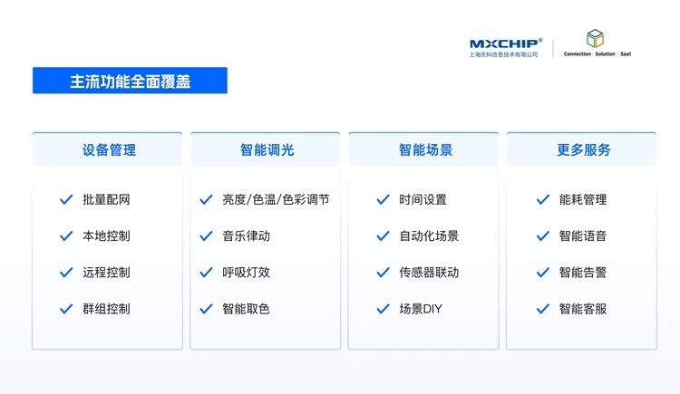 随着智能照明行业的快速发展,照明应用的场景也逐渐多样化,庆科信息作为服务商也持续聚焦终端应用场景与用户需求,持续优化方案与服务。