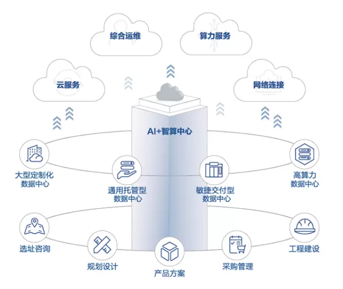 拥抱绿色低碳新时代,公司不断深化绿色技术的研发与应用,具有分布式低碳数据中心及集群式零碳数据中心两大绿色智能解决方案。数据中心采用风电、光电、水电等绿色能源供给,搭建了完整的绿电供应循环体系,通过源源不断的绿电输送,让算力更加低碳和高效。同时通过先进的自研液冷及储能产品、自研AI⁺运维平台进行智能调度等方式,提升算力算效,最大程度降低功耗。公司通过多年技术优势及研发经验,将风、光、储紧密结合,加速实现数据中心100%绿电供应。