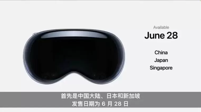 另外,除了推出新的Vision Pro软件版本,苹果还公布了Vision Pro的全球发售计划。其中,Vision Pro将于6月14日起在中国、日本和新加坡开启预购,6月28日起正式发售。