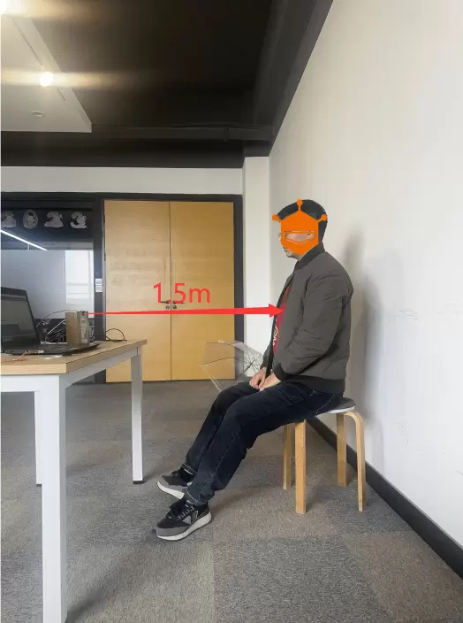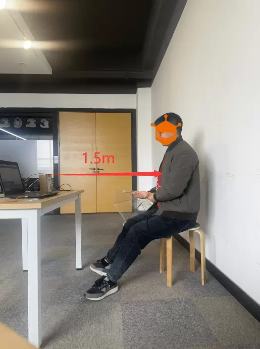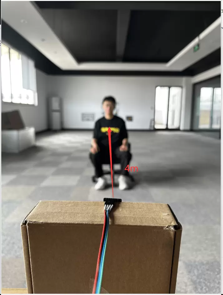 测试方式:将传感器调到睡眠检测模式,人在传感器正前方静坐测试传感器检测静止人体的最远距离。