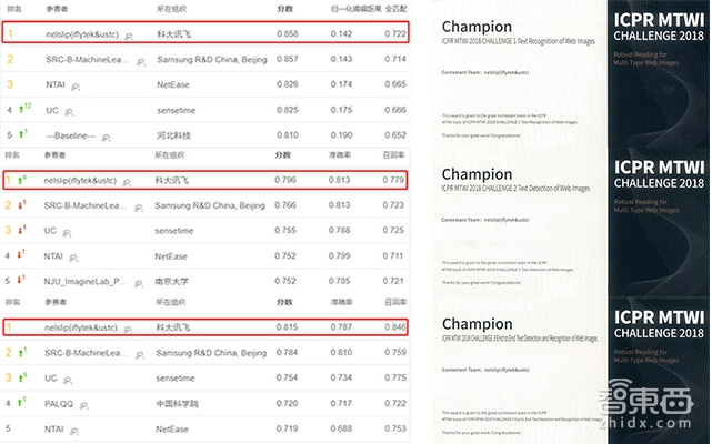 该挑战赛使用华南理工大学和阿里巴巴联合收集的已标注图像作为MTWI数据集,训练集和测试集各有10000张图像。每支队伍有三次机会提交测试结果,最终结果按每支队伍的最优成绩加以排名。最终,科大讯飞和中科大语音及语言国家工程实验室联合团队的成绩相当亮眼,在三项任务全部夺魁。