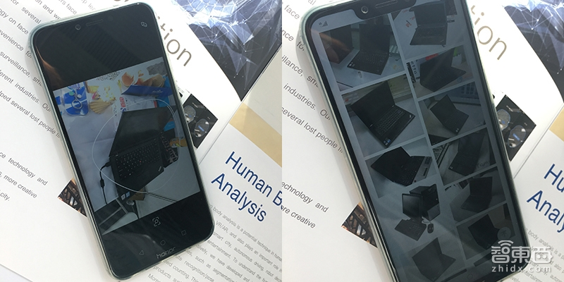 百度也向智东西展示了其图像文字识别技术的一些应用。例如,百度翻译可以做到对图片中的大段文字进行秒翻译;百度识图可以对图片中的任意一个区域画圈,然后搜索这个划定区域内的类似图片。