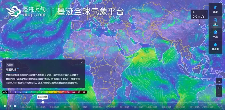 在航空气象探测中,墨迹天气将气象数据处理技术和人工智能技术相结合,提供基于AI的短临降水预报、低能见度天气预报、卫星云图、积冰预报、地面风场预报等服务;针对局部地区危险天气,特别提供雷暴、闪电、颠簸、低空风切变、台风等气象监测预报,提醒飞行员及时采取相关措施,例如推迟起飞时间、改变航线及飞行高度、空中等待、绕飞、改降、返航等;基于气象预报员经验和航空气象相关规定,通过设定不同气象要素的阈值,结合数值预报结果,对机场或航路点可能将要发生的航空天气事件提前预警。