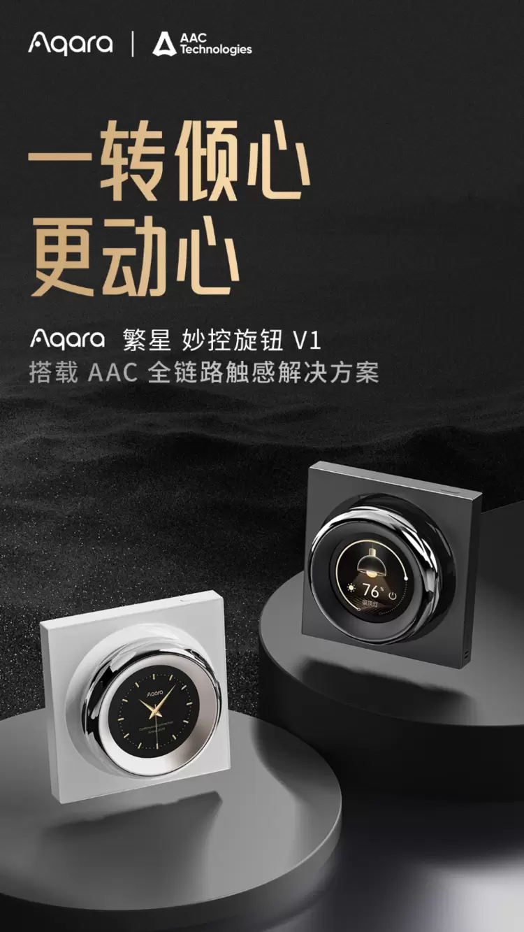 6月17日,全屋智能家居赛道领导者Aqara发布新品繁星妙控旋钮V1。作为Aqara旗下最高端的智能场景开关系列产品,繁星妙控旋钮V1搭载瑞声科技(AAC)全链路触感解决方案,不仅实现了一个旋钮适配不同场景应用的一体化ID设计和触感设计,更以高品质触感生动还原了传统机械旋钮的手感,赋予用户在享受智能化生活的同时,获得符合直觉认知的操作体验。让家更有幸福感!