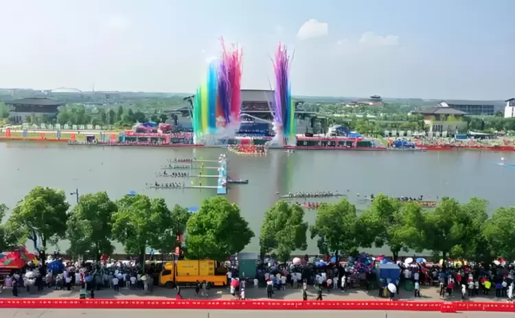 随着鼓声雷动,水花四溅,一场盛大的龙舟盛宴——“奋楫争先 龙腾桃源”库姆巴特·2024年中国龙舟公开赛(湖北·仙桃站)在仙桃市激情上演。来自全国各地的16支劲旅与仙桃本地的12支强队,共计28支队伍、736名英勇的龙舟健儿齐聚一堂,以桨为笔,以水为纸,书写着龙舟竞技的辉煌篇章。