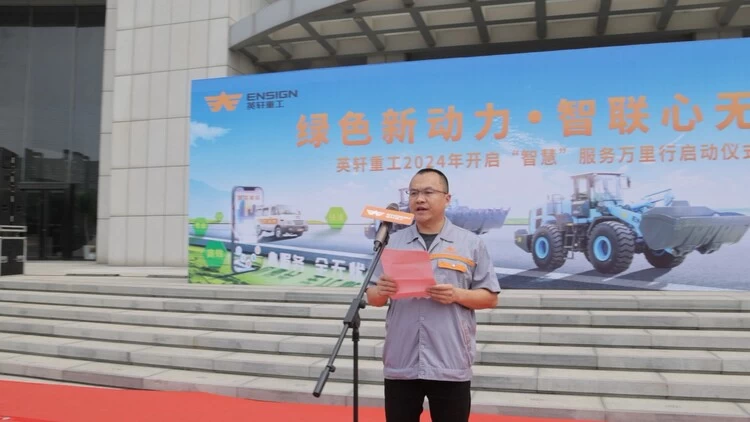 活动伊始,英轩重工副总经理、装载机事业部营销公司总经理衣晓明作开场致辞并对活动作出重要指示。衣总强调,2024年工程机械行业正处于深度调整期,绿色化、智慧化和信息化成为主流,市场竞争转向以产品和服务为核心的竞争。在此背景下,要深刻落实“心服务、全无忧”的服务品牌内涵,以产品为本,提供快速、专业、优质、高效的服务,是提高企业市场竞争力,提升品牌影响力的必由之路。