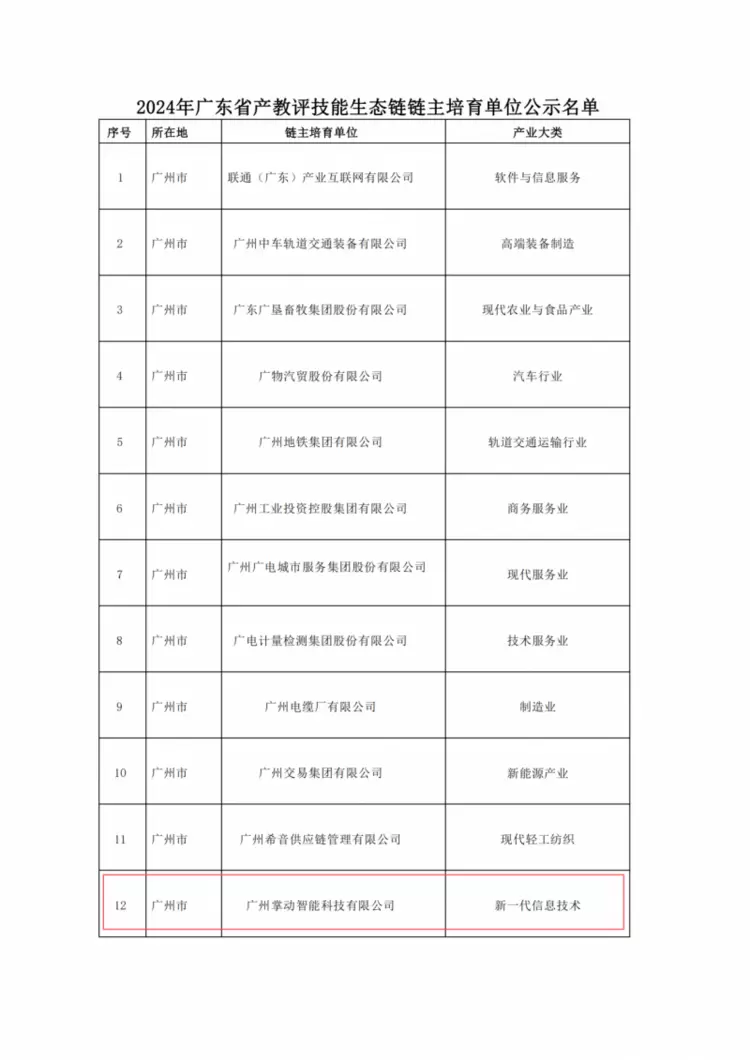 - 掌动智能成功入选 2024年广东省“产教评”技能生态链链主培育单位名单