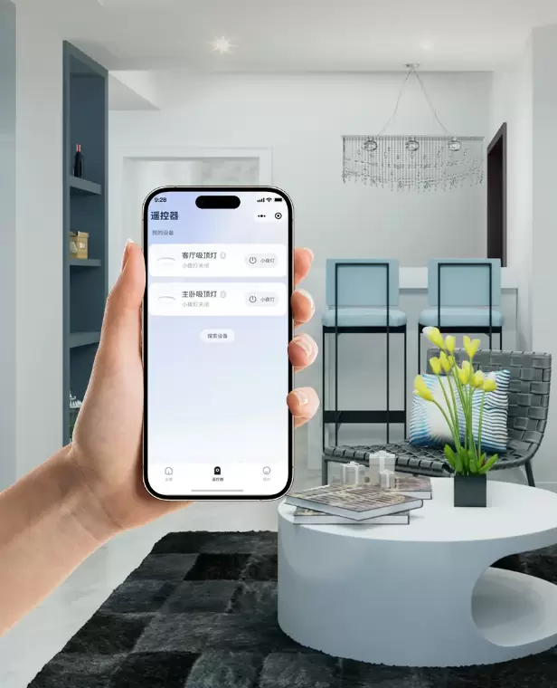 美的照明数字遥控器还能通过手机实现远程遥控,每位家庭成员都可以对照明产品进行控制,且操作互不影响。当小朋友睡着时,家长可在门外遥控关灯,或者调低风扇灯的风速,既能守护家人安稳睡眠,又能解放双手,轻松智控全屋。