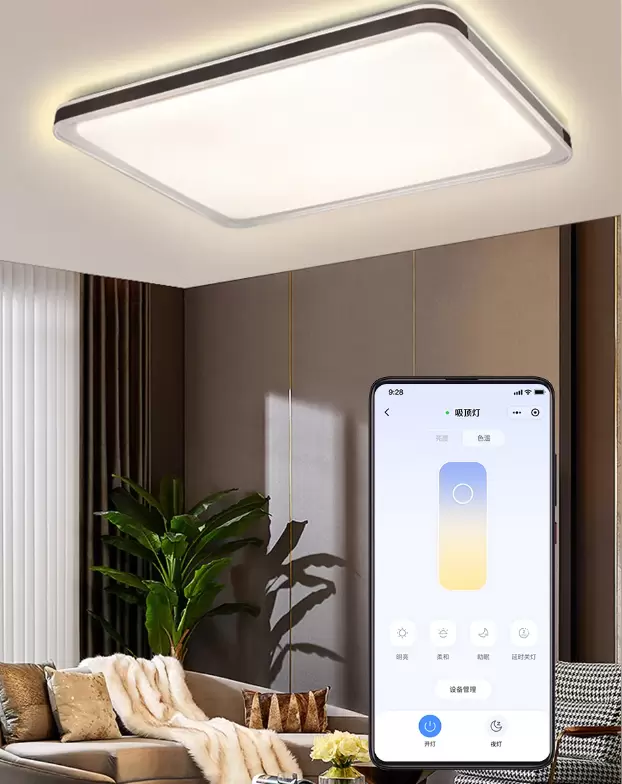 遥控器合而为一,省去了很多不必要的操作,但每个照明产品的遥控器所必备的功能仍然齐全又细致。美的照明数字遥控器所有设备产品运行状态都一目了然,可自在调节。风扇灯的风速、亮度、色温可随心调节;吸顶灯的亮度、色温同样有明亮、柔和和助眠多种模式可以随意选择;浴霸的照明、换气、取暖、安心沐浴等多个功能都可以快速调节;晾衣机的晾衣高度、照明亮度也能自由调节,所有状态清晰可见,仅用手机即可随心定制属于自己的照明环境。