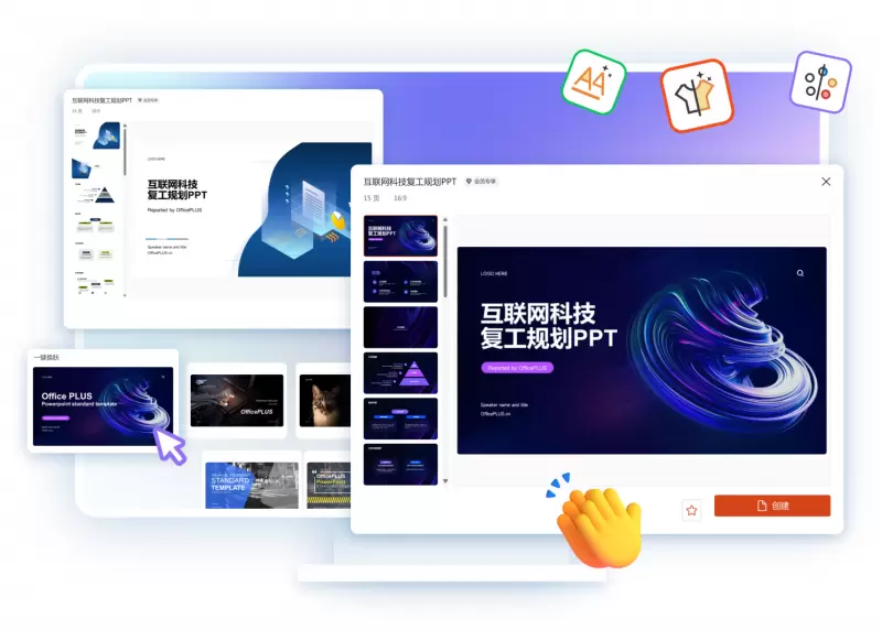 OfficePLUS拥有上百万精美模板素材,代表微软官方审美