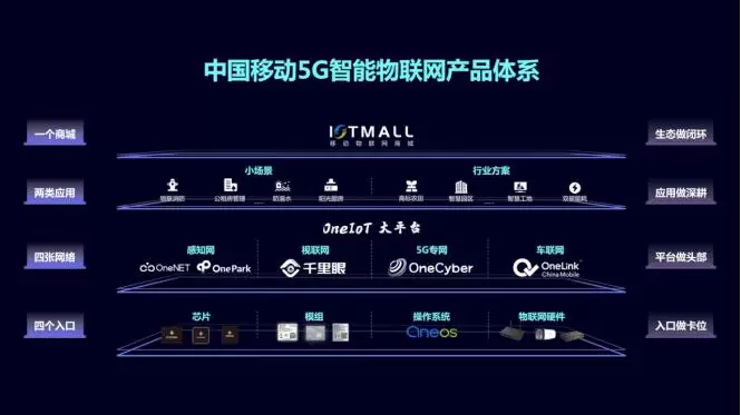 在生态领域,中国移动高度重视物联网生态建设,不断发挥物联网产业引领带动作用,构建了以“能力生态”、“场景生态”、“渠道生态”、“交付生态”、“产业生态”为核心的钻石型生态体系,满足多领域合作需求。同时,联合生态合作伙伴共同成立了“中国移动5G物联网应用产业联盟”,打造5G物联网应用合作平台。