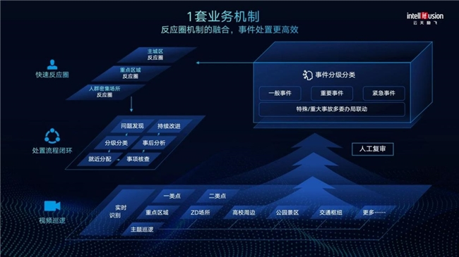 云天励飞公共安全专家沈茂鑫介绍:“按照公安部‘专业+机制+大数据’警务模式从‘被动’向‘主动’转变的要求,我们成功孵化了视频巡逻解决方案。以打架斗殴为例,过去民警接到报案后才会出警并进行处置。现在基于大模型泛场景识别能力,可以对包括打架斗殴在内的各类城市异常风险、隐患、苗头进行主动识别,并结合反应圈机制精准推送、快速处置、事后评估,实现警务工作从‘被动’向‘主动’的创新转变。”