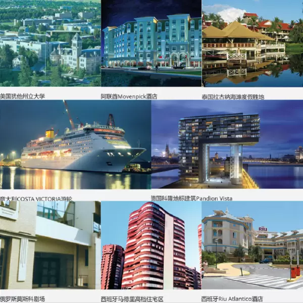 在德国SANITÄR HEINZE写字楼、美国犹他州立大学、阿联酋Movenpick酒店、泰国拉古纳海滩度假胜地、瑞士Vision广场、俄罗斯莫斯科剧场、西班牙马德里高档住宅区等等全球各地,你都可以看到阔盛产品的身影,这充分彰显了阔盛强大的综合实力和全球级的市场影响力。
