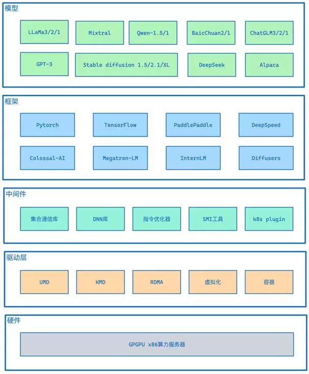 优刻得国产智算集群全面兼容CUDA等主流GPU生态软件栈,这意味着企业能够将CUDA应用零成本迁移到国产智算平台,实现快速适配。集群还提供了完善高效的软件栈工具,集成多种主流的深度学习编程框架,通过测试验证,确保了对行业领先人工智能模型的高效支持,做到开箱即用,用户可快速投入模型的开发和部署,加速了其在人工智能领域的布局和发展。