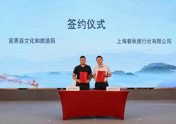 会上,为更好促进宣恩与上海两地文旅产业的交流合作,进一步打响宣恩文旅品牌,宣恩文旅局与春秋旅游签约合作,宣恩旅行社代表与上海旅行社代表签订合作协议,加强双方在文商旅产业互导流量、互嵌资源、互植服务等方面深入合作,提供更丰富更高质量的文旅供给,促进文旅消费增长,推动文旅高质量发展。