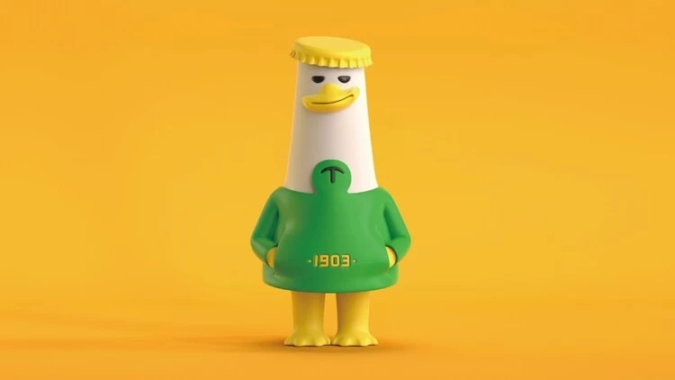 HaJo Yaa 的整体外形以青岛啤酒经典 1903 瓶型为蓝本,极具创意巧思。HaJo Yaa的头部设计以啤酒瓶盖为原型的帽子俏皮可爱,半闭的眼睛传神地展现出小酌后的微醺状态,仿佛让人能感受到那种惬意与放松。特别值得一提的是,衣领和嘴巴别出心裁地呈现出品牌名称“TSINGTAO”的首字母两个“T”形态,不仅与 TSINGTAO 1903 建立了紧密的关联,更是在细节处彰显出对品牌元素的巧妙运用和深度挖掘。