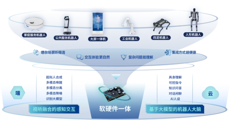 作为中国人工智能“国家队”成员,科大讯飞在语音识别、自然语言处理和大数据技术领域有着深厚的积累和广泛的市场应用。其机器人超脑平台基于科大讯飞超脑2030技术底座,依托讯飞星火大模型的技术,不仅提升了机器人的感知和交互能力,还增强了机器人的学习与进化功能。该平台的核心在于其多模态交云融合技术,使机器人能够在复杂环境下更有效地与人交流,提高服务的智能化和个性化水平。