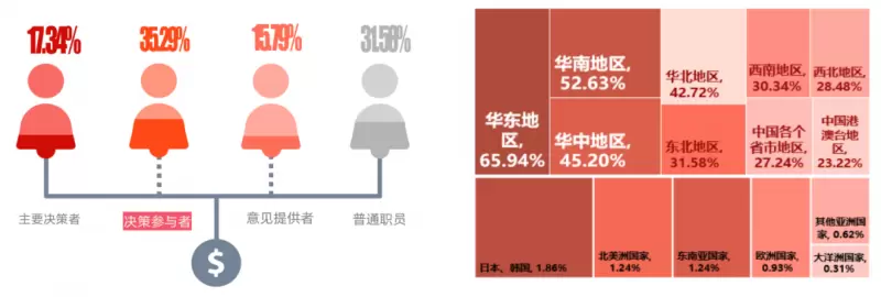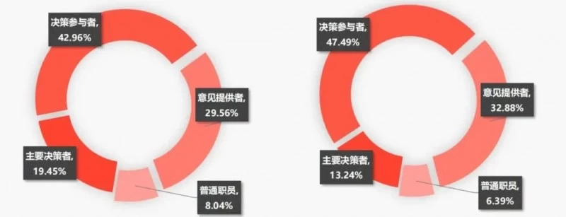 受访展商以参展决策参与者为主,占比为35.29%。其次是普通职员,占比为31.58%。总体来看,本次展会受访展商中,涉及到参展决策的占比近70.0%。