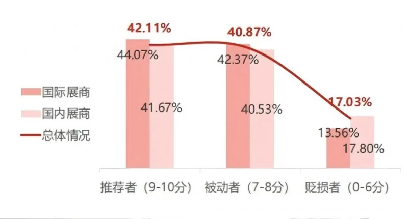 国内展商、国际展商对展会的推荐值分别达到42.11%和44.07%