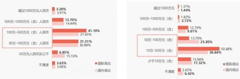 41.1%的国际观众采购预算区间为100万至500万,明显高于国内观众所在企业年度采购预算