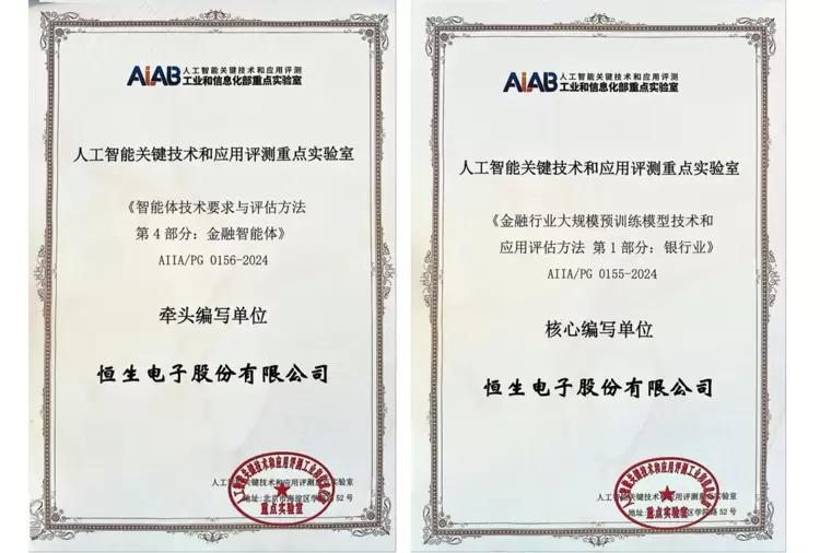 中国信通院发布最新大模型系列标准,恒生电子核心参编两大标准并牵头编制金融智能体标准