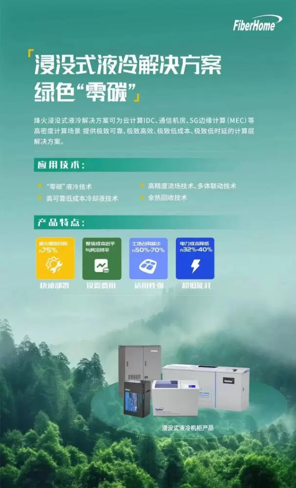 基于烽火通信的浸没式液冷解决方案,客户数据中心的PUE可降至1.1以下,用电成本可下降40%;此外服务器占用空间可节约50%~70%、建筑成本可节约30%~50%,且部署环境普适、交付方便快捷,让客户省电、省地、省心。