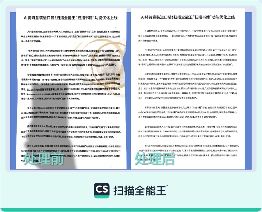 - AI将诗意装进口袋!合合信息扫描全能王“扫描书籍”功能优化上线