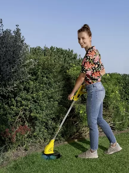 卡赫无线打草机LTR 18-25拥有强大的修剪能力和灵活的操作体验,25cm的切割范围,能高效完成任何手推割草机无法修剪的地方。想要打造干净清爽、整齐利落的草坪边缘,只需通过调节手柄来旋转打草头即可实现。机身配有保护罩,可以有效避免修剪下来的草屑飞溅,安全开关设计也能最大程度保障用户的使用安全。
