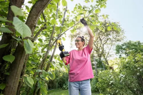 卡赫无线树枝剪TLO 2-18采用精准锋利的剪刀片设计,能轻松应对直径2.5cm以内的树枝和绿篱,搭配延长手柄后可对3.5米的树枝进行修剪,再也不必为高处的树枝发愁。此外,整个机身小巧轻便,操作简单易上手,还设有防止意外启动的安全开关,让修剪过程更安心;柔软的手柄设计,也能带来更舒适的使用体验。