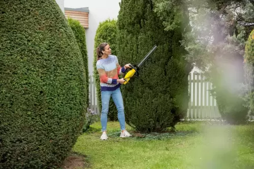 卡赫无线修枝机HGE 18-45搭载锋利刀片,拥有45cm的切割长度,无论是大面积修剪还是精细造型,都能一机搞定。整机轻便,采用人体工学舒适手柄设计,用户需双手握持操作,既省力又安全。