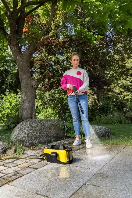 搭载18V可拆卸电池包的卡赫手持式清洗机KHB 4-18,无线免接电,随时随地可以开启清洗,无论是户外家具、儿童户外玩具、花园工具、露台或是户外地面,都不在话下。其配备的扇形喷枪能产生最大压力为24 bar的宽幅扇形水流,收获事半功倍的清洁效果。