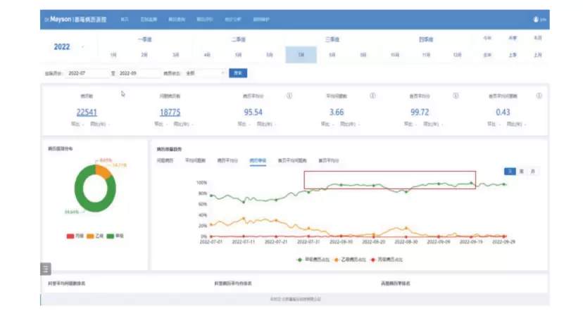 全院的甲级病历(下图中的绿色曲线)从原先的75%直接暴涨到了95%!