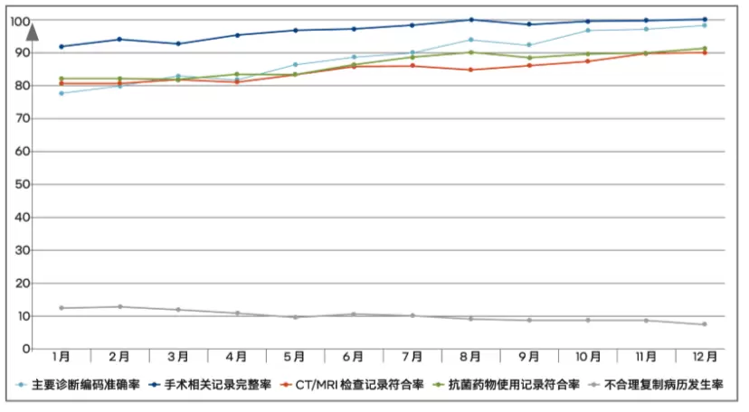 由此双管齐下,有问题的病历数量就变得越来越少,以某医院为例——
