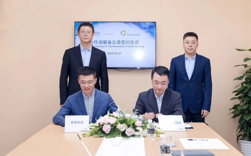 27日,亚信科技高级副总裁梁斌出席中移国际合作签约仪式,与中移国际董事长兼行政总裁王华共同签署能源业务合作备忘录。