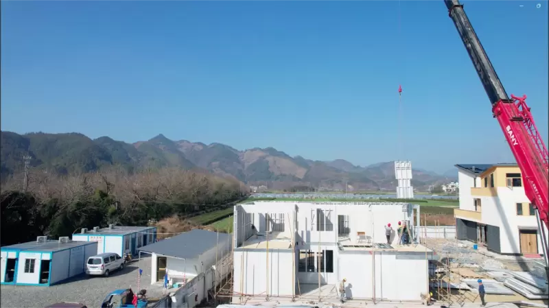 乡熙绿建创新研发乡熙碳硅模块结构体系,乡熙“碳硅模块”经国家实验室检测,可做到6kn/㎡承载力,9度抗震设防烈度,50年设计使用年限,2级防火等级,0.1W/(m·K)综合导热系数,50dB隔音性能,相较于传统砖混现浇的建造方式,各项建筑性能均得到大幅度改善。在建造方式上,乡熙绿建可实现建筑模块“超纳硅模块”在工厂的批量化生产,现场装配式施工,施工过程环保无污染,超80%干作业,可实现15天结构主体搭建完成,90天项目精装修交付。