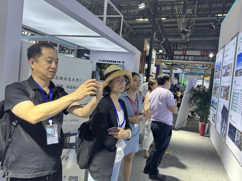 在E4馆“好房子产业链展区”B08展区,由乡熙绿建与多家住房产业链企业联合组成的“新科技、新动能、好房子产业链”展区人流络绎不绝,乡熙绿建此次展示的乡熙全能住宅、“超纳硅”建筑核心保温材料及围绕“绿色工业化建造体系、智慧化绿能系统、数字化业务管理平台、全生命周期运维服务”的产品智造体系,综合展示了乡熙绿建在建造乡村宜居好房的多项优势。展会期间,乡熙绿建展区吸引了众多参展嘉宾的驻足参观。